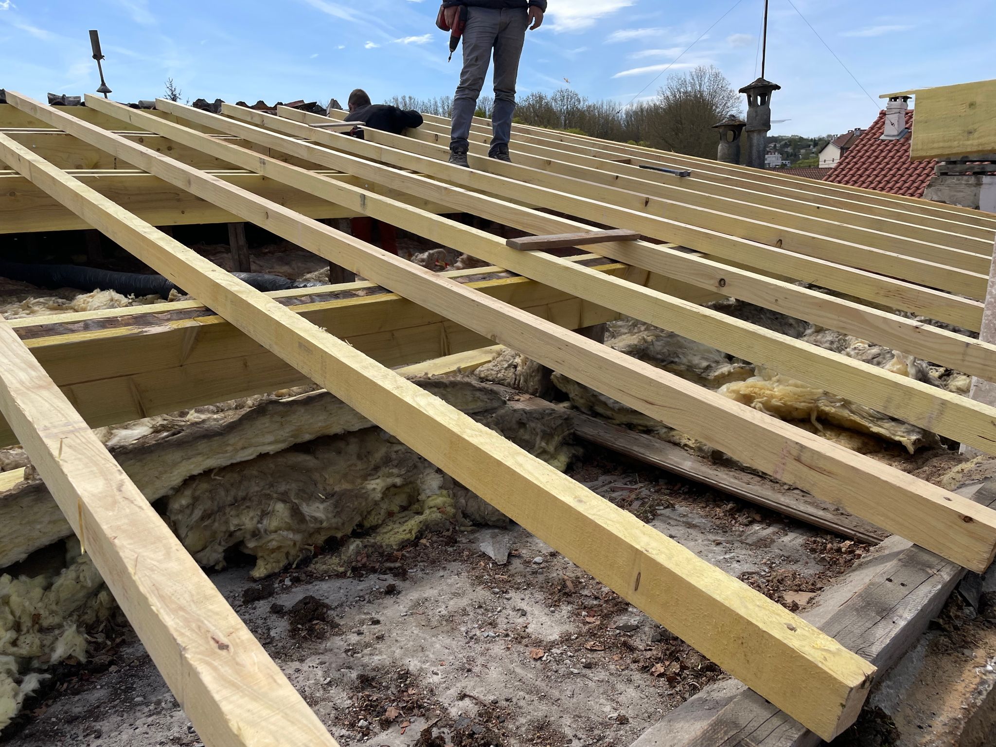 5️⃣ Pose de charpente traditionnelle
